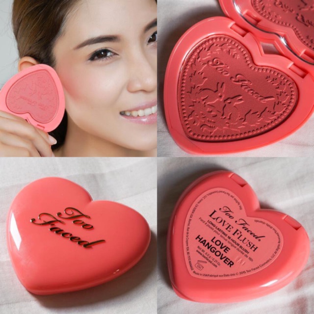 Mẫu mã phấn má hồng được dùng rộng rãi nhất của too faced việt nam hiện nay là bộ sưu tập phấn má hồng love flush long lasting 16 hour blush baby love i will alway love you love hangover tạo khối và phấn má soul mates blushing bronzer hoặc phấn má peach my cheeks melting powder blush.